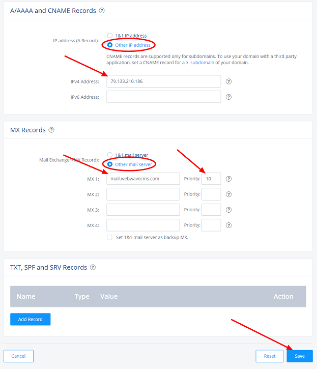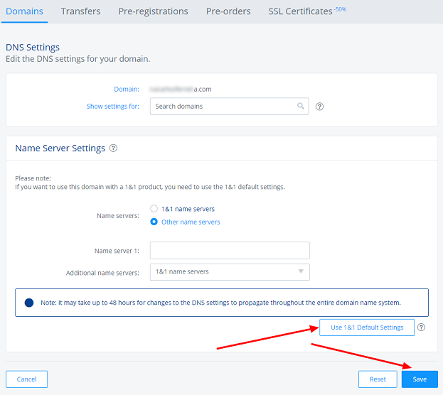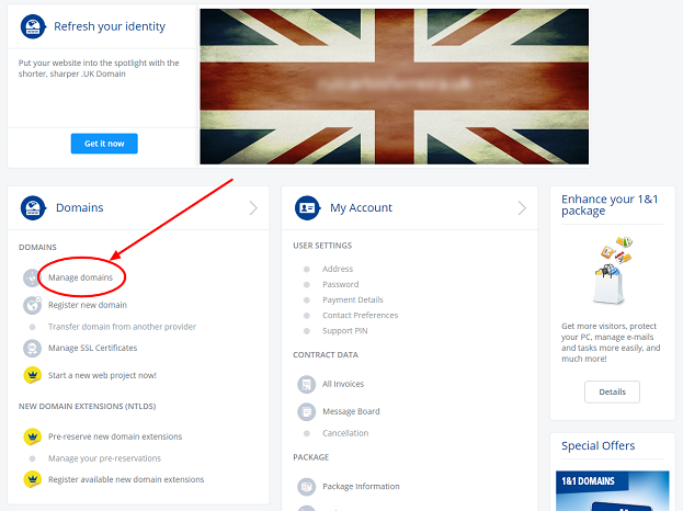 Aby poprawnie przekierować do strony internetowej stworzonej w kreatorze stron www WebWave domenę wykupioną w www.1and1.co.uk wykonaj następujące czynności: