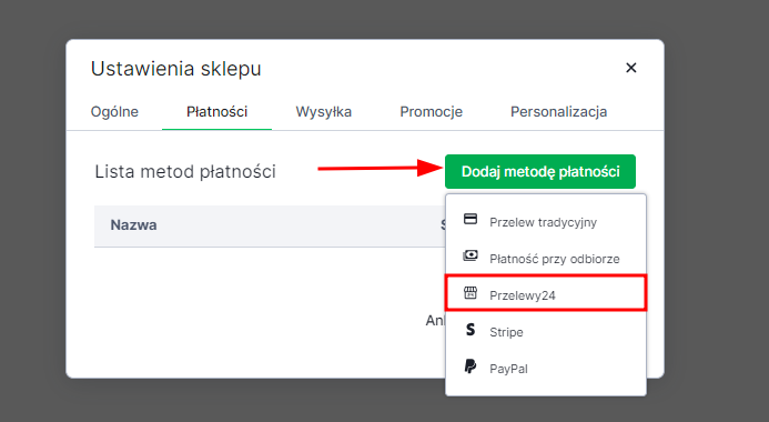 Włączenie płatności w ustawieniach sklepu
