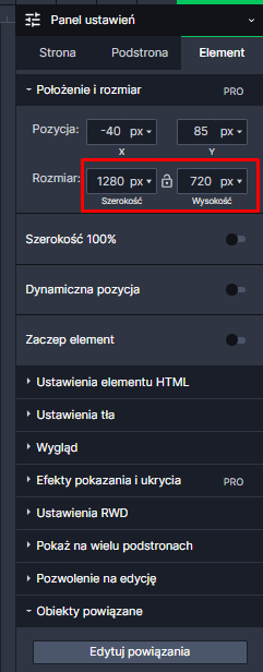 Na zdjęciu pod parametrami można kontrolować wygląd, jaki obraz przyjmie na opublikowanej stronie.