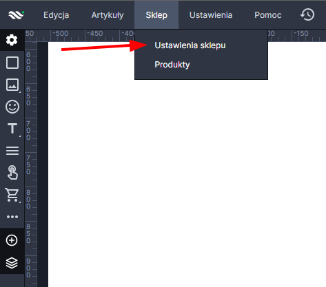 2. W górnym Pasku narzędzi wybierz zakładkę "Sklep" -> "Ustawienia sklepu".
