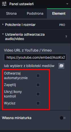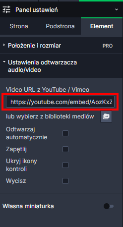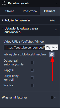 UWAGA! Do biblioteki mediów dodać możemy pliki MP4 i MP3 - zalecany kodek h.246.