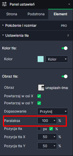 Zaznacz wcześniej dodane zdjęcie, a następnie zmieniając wartość okienka „szybkość przewijania” ustaw żądany efekt parallax.