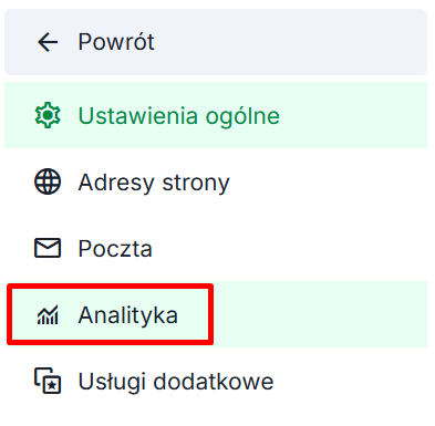 Zakładka Analityka przekieruje do wszelkich raportów na stronie