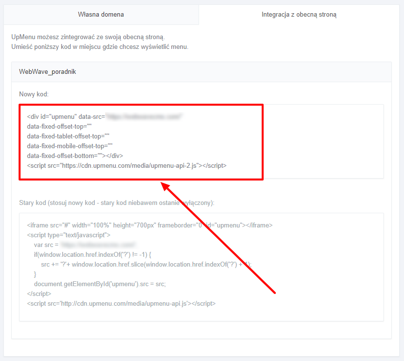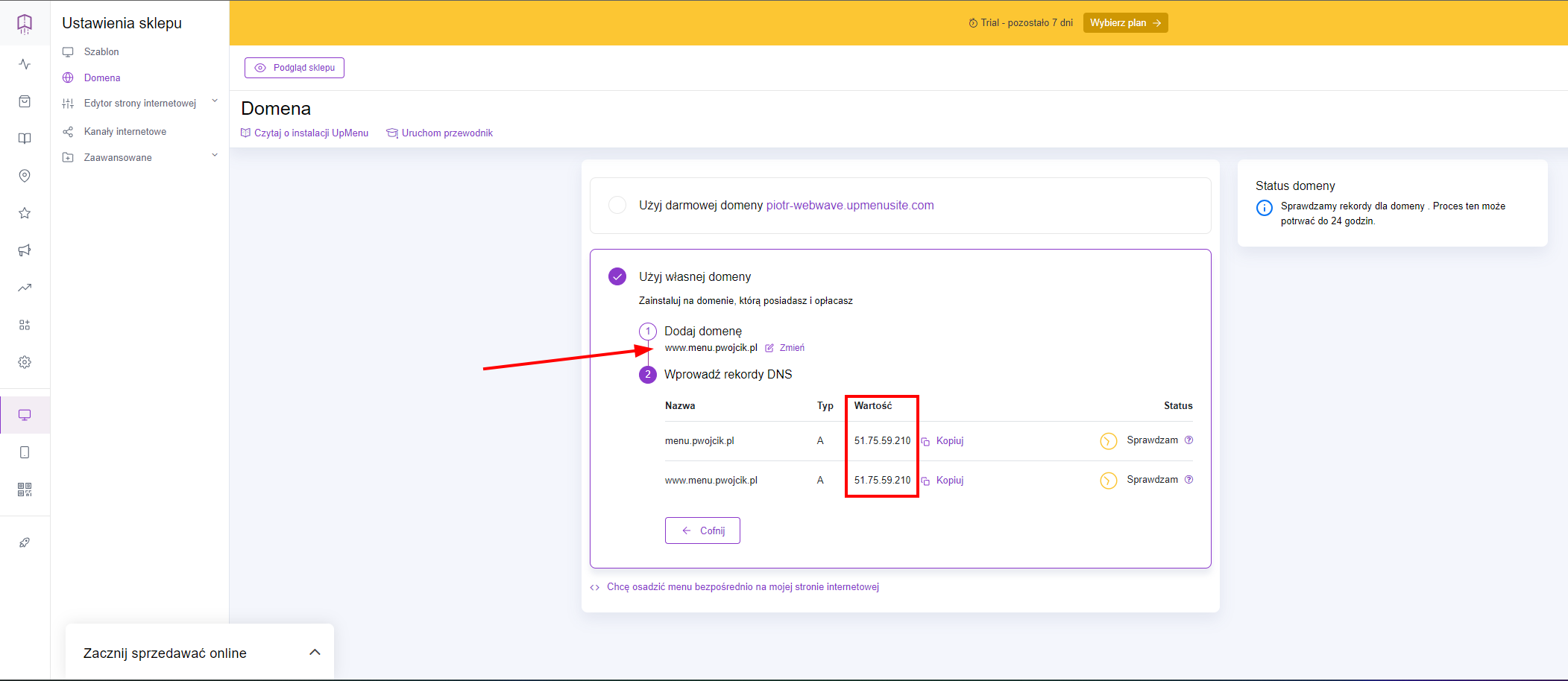 | Do integracji UpMenu ze swoją stroną będzie Ci potrzebna dodatkowa domena którą trzeba będzie podłączyć pod system UpMenu. |