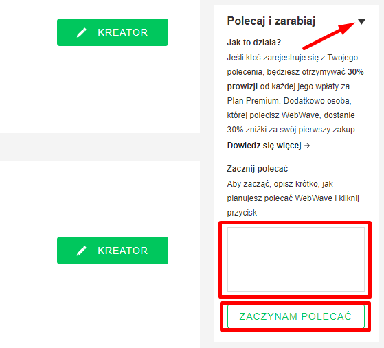 WebWave CMS - kreator stron www bez kodowania - ma swój autorski program polecania.