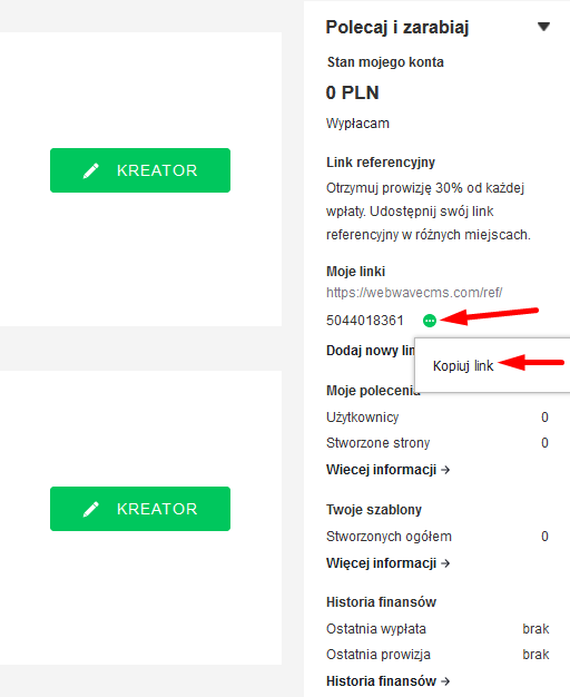 UWAGA! Aby otrzymać prowizje klient musi własnoręcznie utworzyć konto oraz utworzyć swoją stronę.