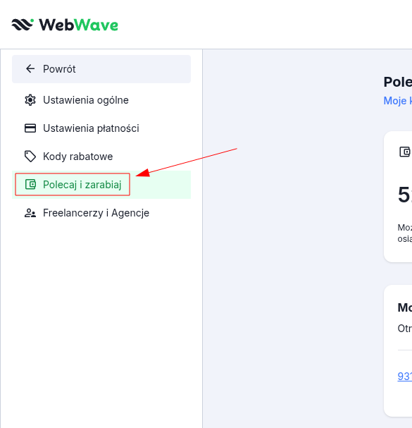 Środki uzbierane na twoim koncie można wypłacić bezpośrednio w swoim Panelu WebMastera w zakładce "Polecaj i zarabiaj". Zanim jednak będzie można to zrobić, konieczne jest przystąpienie do programu partnerskiego WebWave, który pozwala na pełne korzystanie z tej funkcji.