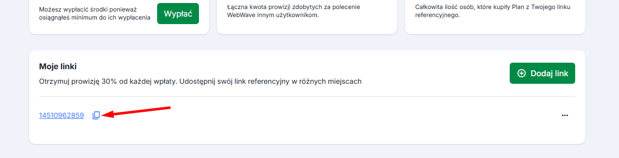 Uzyskane w ten sposób środki możesz przeznaczyć na usługi WebWave lub jeśli uzbierasz co najmniej 500 zł, wypłacić je na swoje konto bankowe.