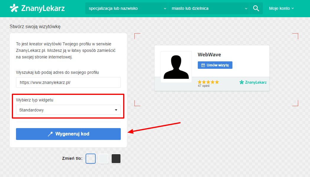 Dzięki integracji znanylekarz.pl oraz WebWave - kreatora stron www bez kodowania - wystarczy kilka minut, aby umożliwić pacjentom odwiedzającym Twoją stroną internetową na zapoznanie się z komentarzami innych osób, a nawet umówienie wizyty.